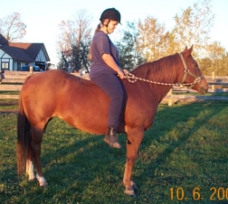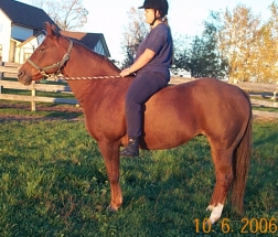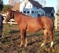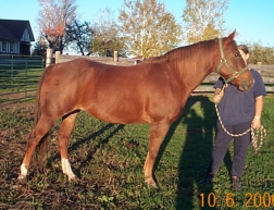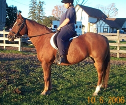 JupiterBarn Name: Jupiter Breed: QH Height: approx 14.2hh Age: 16 yrs old Gender: Mare Colour: Chestnut Health: Excellent Lameness: None - Sound Vices: None Personality: Friendly. Easy to Catch, Lead, Groom, Trailer, etc. Good with other horses, ponies & donkeys. History/Training: Apparently She Has Been Shown, Jumped, Trail Ridden, Used in Lessons, etc - When you first get on her she does not want to be ridden, but with some patience and coaxing she does settle down and begins to co-operate, because of this bad habit that she has obviously been let away with i would not recommend her for a beginner or nervous rider Future/Suitability: Trail Riding, Broodmare, Companion, Leadline - With Some Re-Training She Should be Suitable for Show or Pleasure Riding, English or Western Adoption Fee/Purchase Price: Was $1500, Now .... WINTER IS HERE, OUR BARN IS FULL, AND OUR HAY BILL ALONE IS $500 A WEEK AND IT WILL CONTINUE TO INCREASE THROUGHOUT THE WINTER - WE CAN'T HELP MORE HORSES UNTIL WE FIND HOMES FOR THE ONES THAT ARE HERE - SO IF YOU HAVE AN EMPTY STALL, EXTRA FEED AND LOTS OF LOVE PLEASE CONSIDER ADOPTING JUPITER - WE WILL CONSIDER BEST OFFER OVER $800 Current Status: Located at a Foster Home in Coldwater, ON ~ Available for Adoption/Sale. If you have any questions and/or would like to see Jupiter please email Claire at HCW. Thanks. SPONSORS NEEDED!!!: If you would like to help Jupiter, but are not able to Adopt or Foster her at this time perhaps you would be interested in Sponsoring her by helping to cover the costs of (or a portion of) her daily care - such as her Hay, Purina High Fat High Fibre Pellets, Vitamin/Mineral Supplement, Vet, Blacksmith, De-Worming, Over the Fence Feeder, Blue Salt Block, Treats, Horse Size Halter, Winter Turnout Blanket, Lead Rope, etc. If you would like to help in any way, please email Claire at HCW for details. HCWEquineRescue@sympatico.ca Thanks!! Please Note: Trailering is Available for Jupiter. The Cost is Your Responsibility But We Can Make All The Arrangements for You From This End. If You Would Like a Trailering Quote Please Call Josh at 905-242-7229 or Email at: countryhollow@sympatico.ca Please Supply Him With Your City/Town Name and Postal Code, So That He Can Give You An Accurate Quote.
